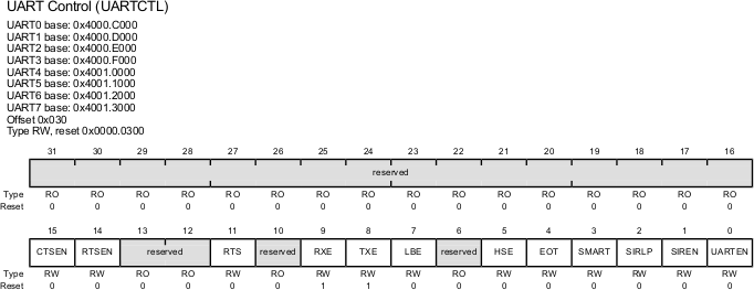| UARTCTL | 0x030 | UARTn_CTL_R | UART Control |