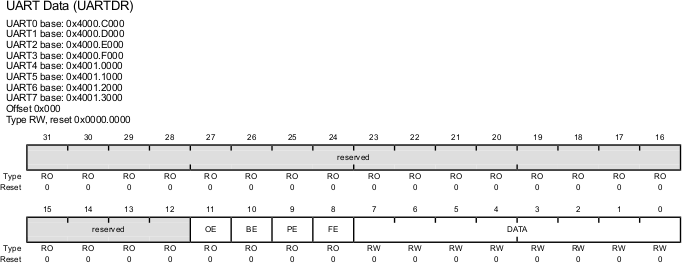 | UARTDIR | 0x000 | UARTn_DR_R | UART Data |